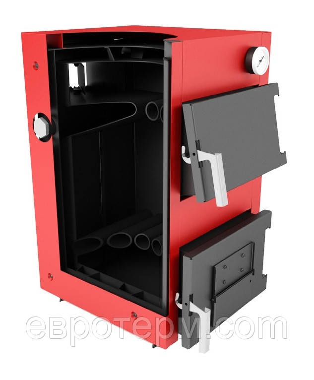 Теплообмінник виготовлений з сертифікованої сталі високої якості, товщиною 3 мм Площа теплообмінної поверхні (а отже – і ККД котла) збільшена за рахунок омиваних водою колосників, виготовлених з товстих безшовних труб. Від корозії зовнішні стінки пристрою захищені шаром міцної порошкової фарби.