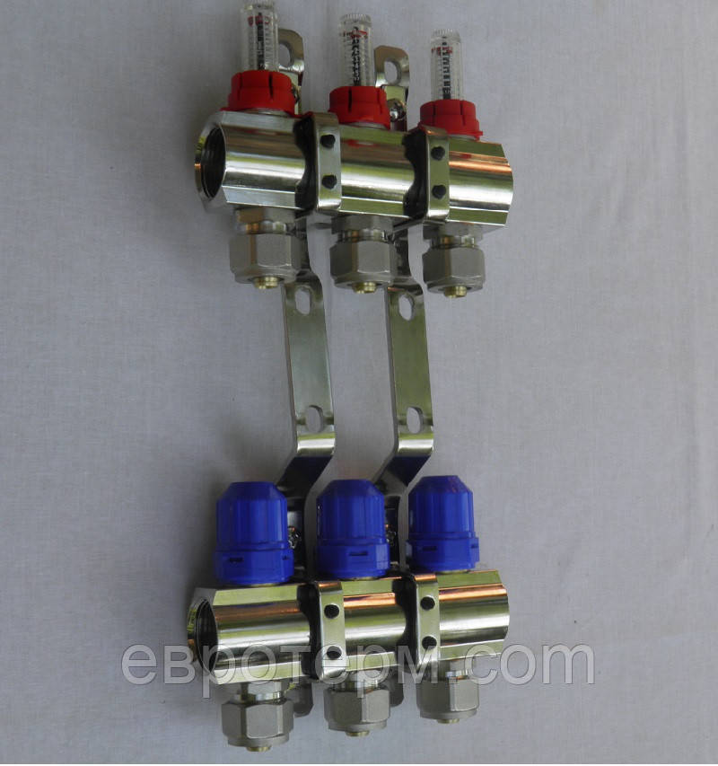 Колектор для теплої підлоги на 8 контурів хромований Gross