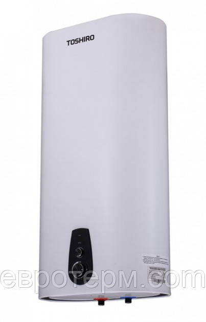 Водонагрівач ( Бойлер ) електричний TOSHIRO WSB EV 50 D2T це надійний плоский бойлер з вертикальною установкою, з посиленою конструкцією - 2 бака з емальованої сталі, сталевої зовнішній корпус покритий емаллю, два захищених (сухих) Тена загальною потужністю 2,2 кВт., вибір одного з 3-х можливих режимів потужності: 2200/1200/1000 Вт. Новітня модель 2018 року. Водонагрівачі випускаються Toshira об'ємом 30, 50, 80 і 100 літрів. Тип встановлення: вертикальний.